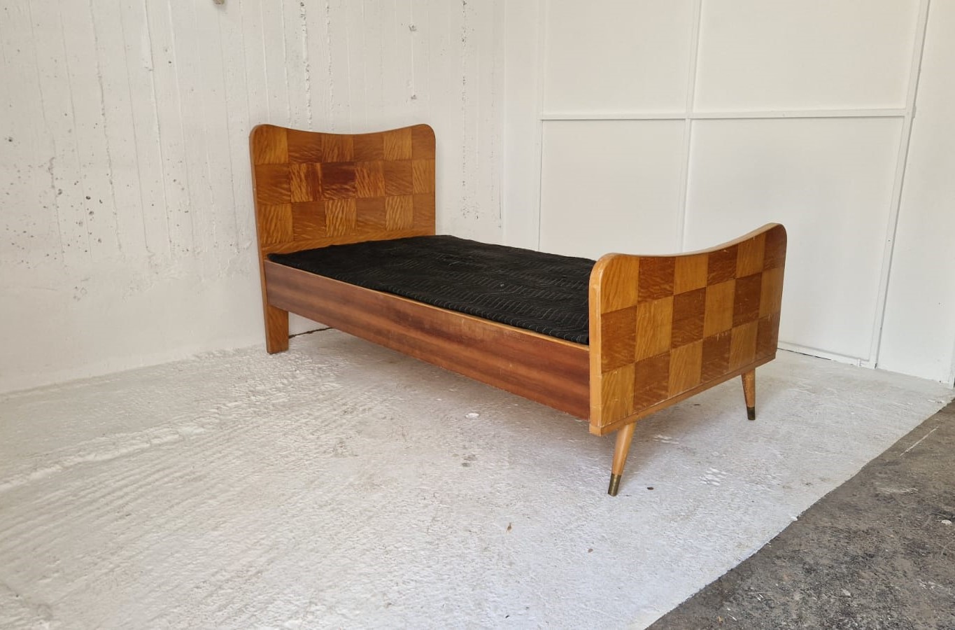 2 Κρεβάτια δανέζικα με καπλάμα-σκακιέρα, δρυς.
